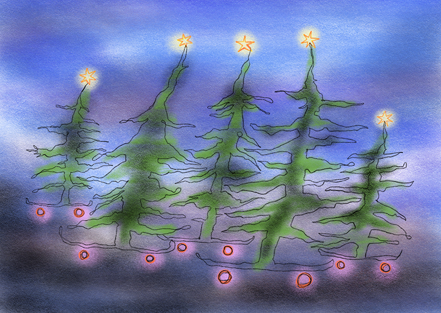 Kr. 35,- Gratis frakt! Vipps 971 77 871 / egon@quack.no Julertrær - Eli Hovdenaks bidrag til utstillingen Illustrerte julekort – Illustratørenes egne julehilsener på Grafill R21 22.11 - 19.12 2018. Prosjektansvarlige: Egon Låstad og Lars Magnus Aurtande. Prosjektet ble støttet av Grafill i 2018. Serienr. IJ/015